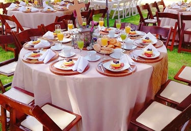 Combina nuestras mesas, sillas y mantelería para eventos; de manera que refleje la visión de tu evento y tu personalidad.
