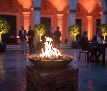 Asegúrate de que la noche y el frío no detengan la fiesta; añade un toque cálido con nuestros elegantes calentadores de exterior en estilo torre, o sorprende a tus invitados con una experiencia inolvidable gracias a nuestros exclusivos calentadores tipo fogata.